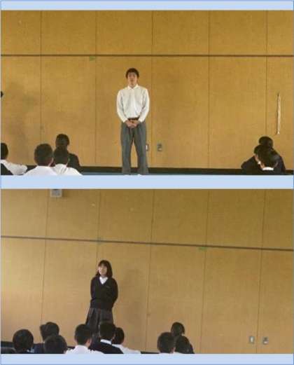 3年間を振り返って男女バスケットボール部キャプテンが、思い出を話しました。