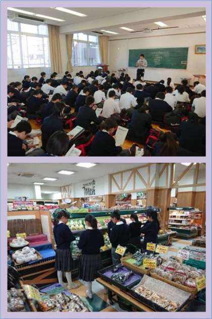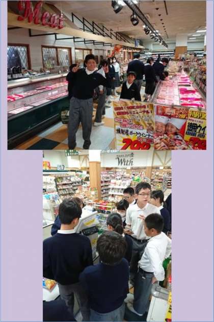 1年生は5,6時間目を使って、明日の校外学習に向けての事前指導(多目的室)と野外炊事の食材の買出しをしました。