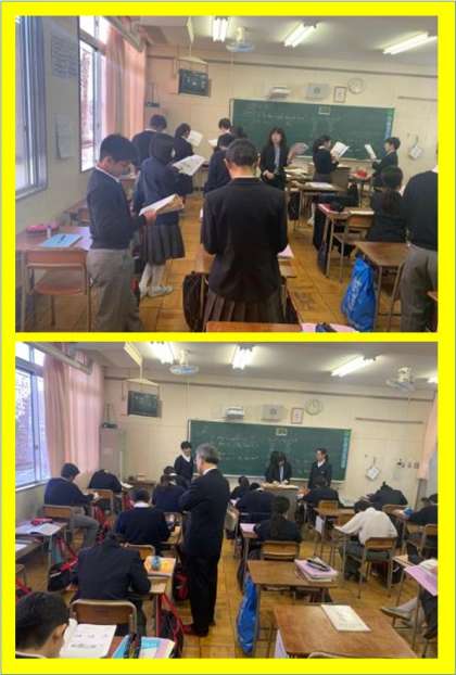 5時間目、2年1組で新熊先生による英語科研究授業が行われました。