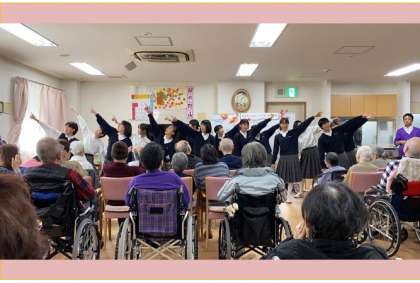 クリスマスソングや、今流行の「パプリカ」などを歌いました。また、たくさんの人が「きよしのズンドコ節」や「川の流れのように」を一緒に歌ってくださり、とても心が温かくなりました。(顧問:角床・松枝)
