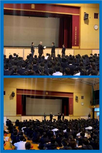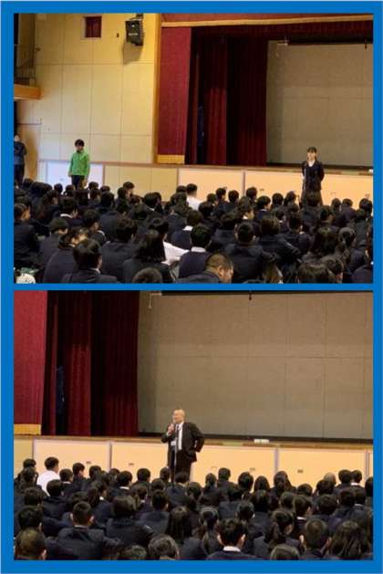 「12月はお坊さんが忙しく走り回るから師走と言います。先生も大変忙しい時期です。君たちはテストも終わり一息ついてる頃でしょうが、本当の実力を得るには、テストを振り返り見直すことが大事です。2学期もあと僅か、しっかりと学校生活を送ってください。」