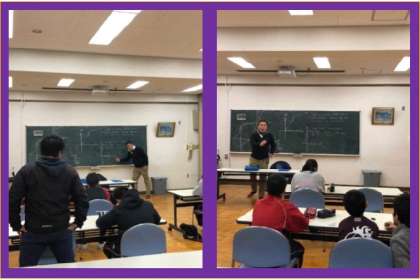 内容は数学です。1年生は比例・反比例、2,3年生は立体と図形をボランティア講師青木先生から教わりました。