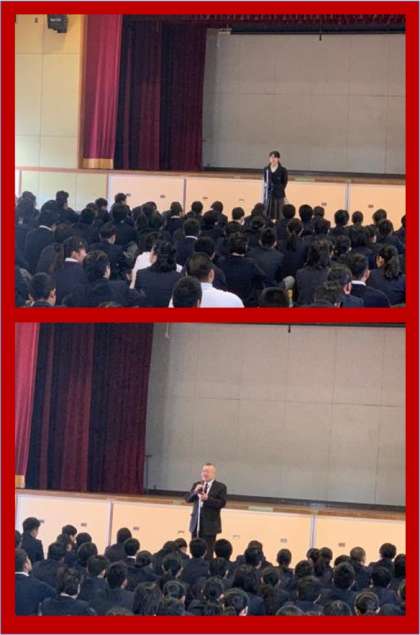 「おはようございます」の元気な挨拶のあと、校長先生のお話です。