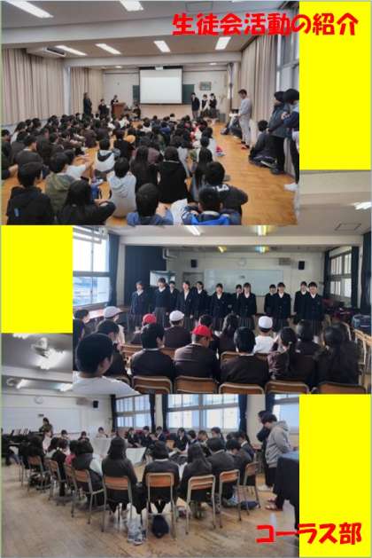 まずは、多目的室で生徒会が現在の学校の様子を説明してくれました。