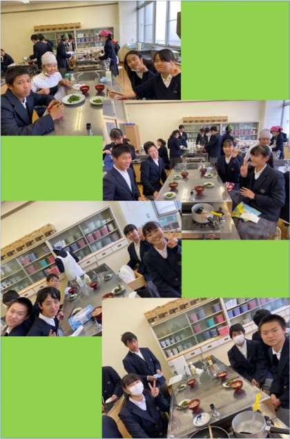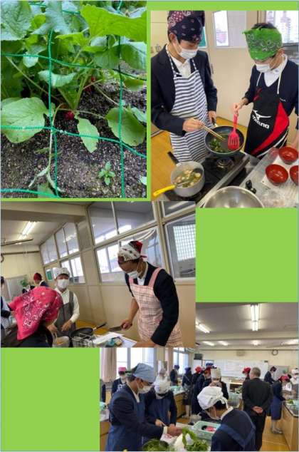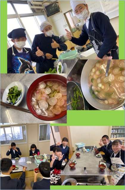 本日4時間目に、3年2組でカブの味噌汁、カブの葉の炒め物を家庭科の調理実習で調理しました。