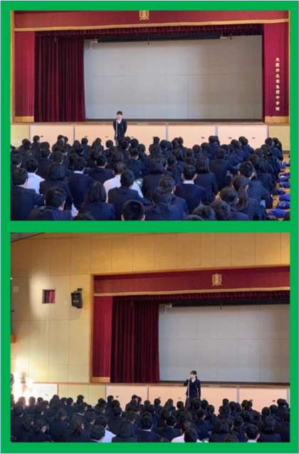 生徒会からは、「3学期の始業式から2日目に1,2年生はチャレンジテスト、3年生は実力テストがあるので、冬休みはしっかり勉強しましょう」
