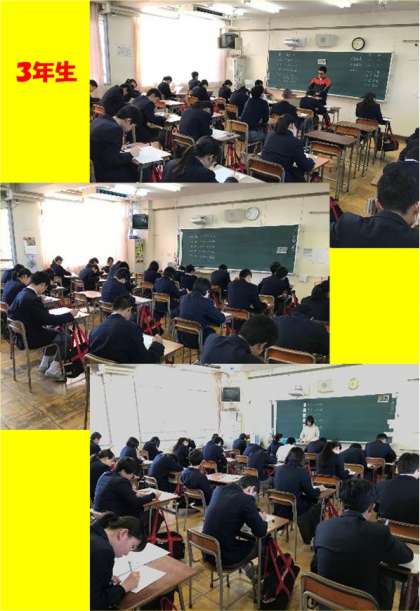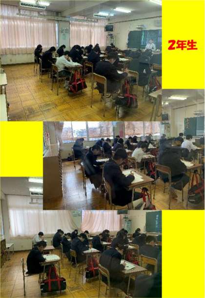 本日1,2年生はチャレンジテスト。3年生は実力テスト。
