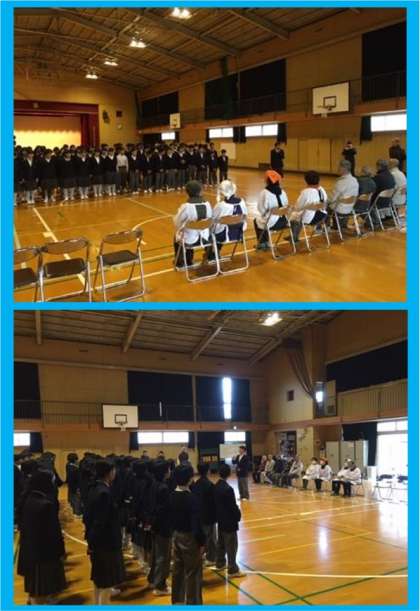 つきたてのお餅をいただいた後、お礼に体育館で文化祭で歌った学年の歌「スマイル」を披露しました。
