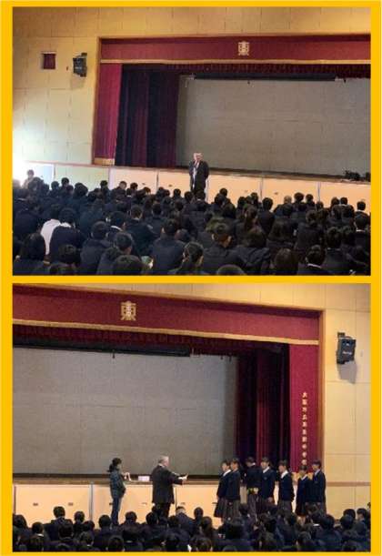 今朝は冷え込んで寒い朝でしたが、生徒たちは予鈴までに体育館に集合し、生徒主導で静かに整列し全校集会が始まりました。