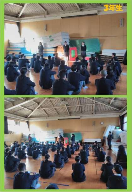 毎週木曜日は学年別集会です。1年生は体育館、2年生は多目的室、3年生は格技室で行われます。