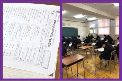 学校元気アップ事業と国語科とで数回打ち合わせを行い、授業中や放課後を利用して過去の問題を活用し、何級を受けるか等取り組んできました。