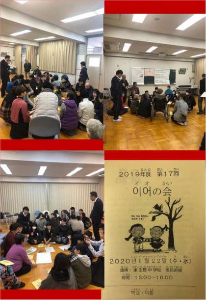 イオの会は東生野中学校夜間学級・東生野中学校の朝文研の生徒や、東中川小学校・小路小学校の民族学級6年生児童が、世代や学校の違いをこえて集い、交流する場として始まったものです。