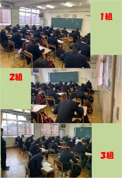 3年生は、学年末テスト最終日です。今日で中学校でのテストは終わります。