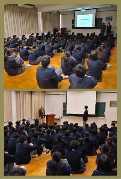 1年生は6限目に「歯と口の健康教室」があり、学校歯科医の木下宏先生から口腔内の健康についてお話をしていただきました。