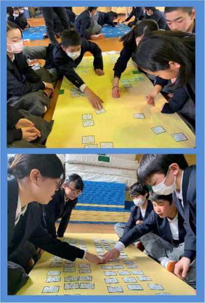 2年生は5,6時間目、格技室で百人一首大会を行いました。