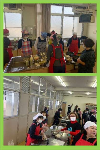 韓国料理である「チジミ」、中国料理の「水餃子」の2種類を作りました。夜間学級の生徒さんたちの手際良さに助けられ、1時間で調理、食事、片付けと出来ました。(担当:浦久保)
