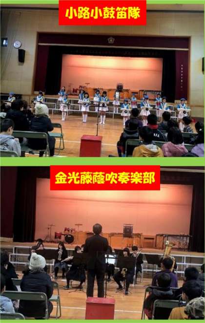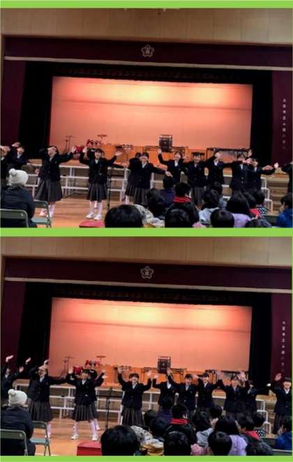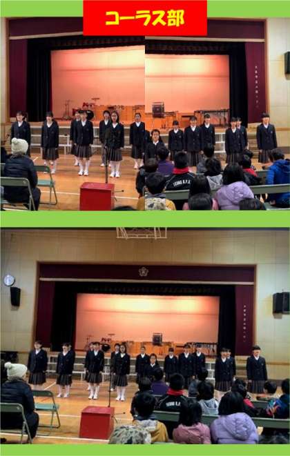 小路小学校冬まつりにコーラス部が招待されました。体育館で音楽まつりということで、小路小鼓笛隊、金光籐蔭吹奏楽、東生野コーラス部が出演しました。