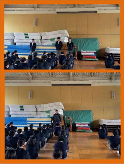 今日は、各班の1班から話がありました。それぞれから、「今までの努力は無駄ではない。」、「好きなことを見つけて苦手なことを克服しましょう。」、「受験が終わったけど気を引き締めよう。」と話がありました。