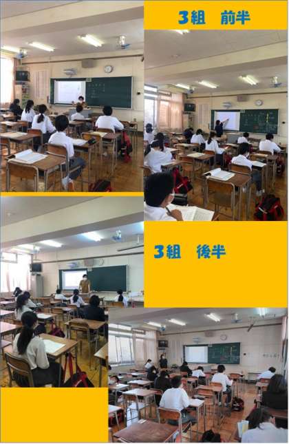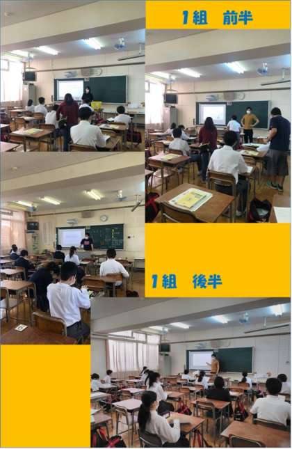 1年生は分割しての登校です。各クラスの出席番号1〜16番までの前半の生徒は8時30分から、17〜33番までの後半の生徒は10時30分からでした。