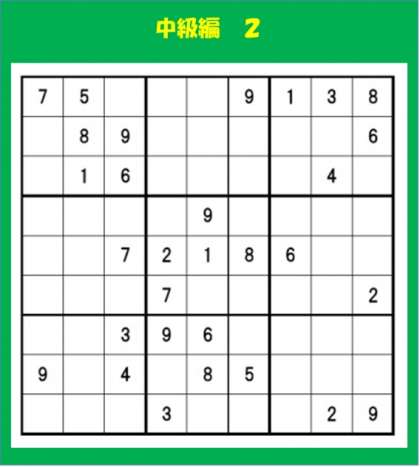 2 タテ列(9列あります)、ヨコ列(9列あります)、太線で囲まれた3×3のブロック((九つあります)のどれにも、1から9までの数字が一つずつ入るようにします。