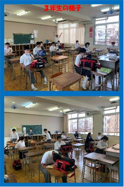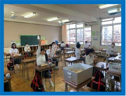 3コマの授業が終わって、パンと牛乳の簡易給食です。