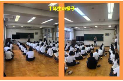 1年生は多目的室で、学校生活や授業の受け方などのオリエンテーションを行いました。
