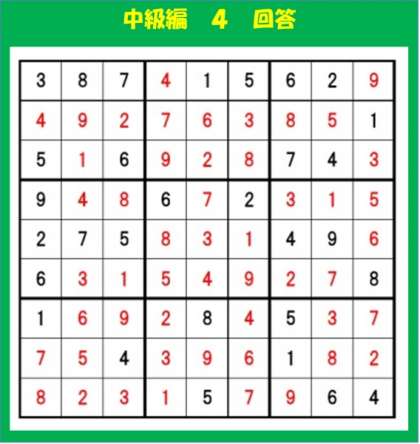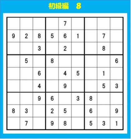 ・タテ列(9列あります)、ヨコ列(9列あります)、太線で囲まれた3×3のブロック((九つあります)のどれにも、1から9までの数字が一つずつ入るようにします。