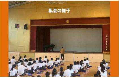 今日は、一年生にとって初めての学年集会を体育館で行いました。