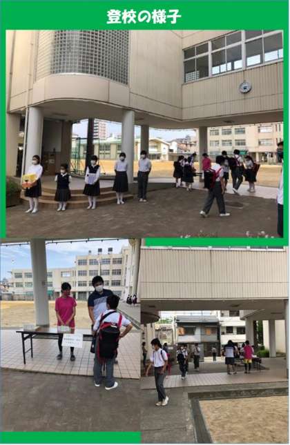 登校してきた生徒は、学年別のブースにより、健康観察カードを提出します。