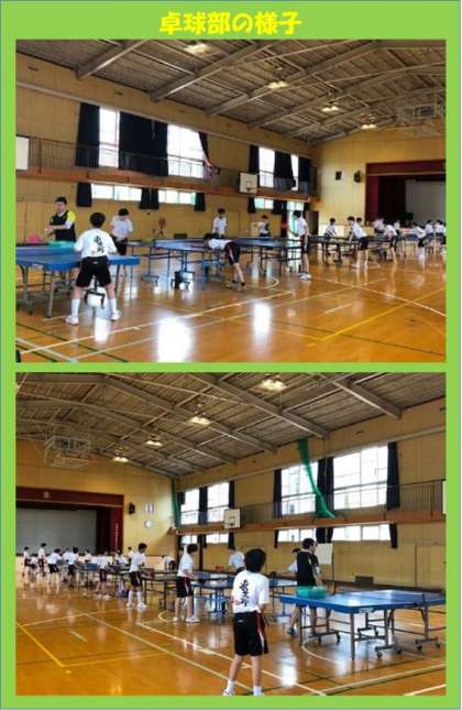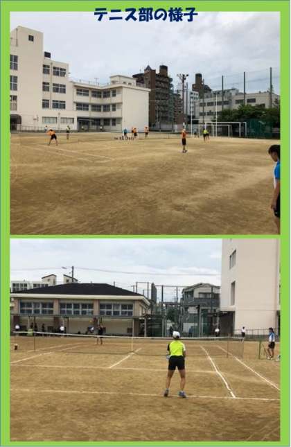 学校ではテニス部が、大池中、北稜中を招き、練習試合をしています。また、体育館では午前中男子バスケットボール部が練習試合を、体操部が練習していました。