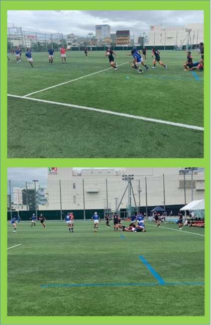 朝方まで大雨警報が発令されていて、練習試合が行なえるか心配でしたが、警報も解除され、また会場が関大北陽高校・中学校のグランドの人工芝だったので、無事行えました。