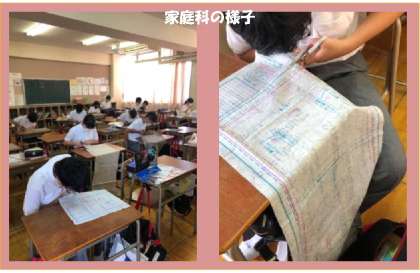 1年生の家庭科の授業、ブックカバーの制作です。