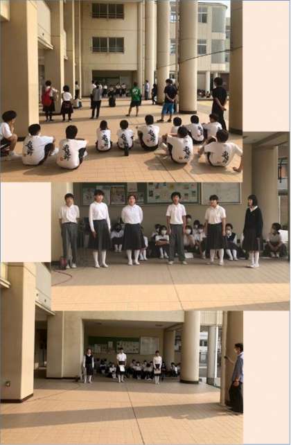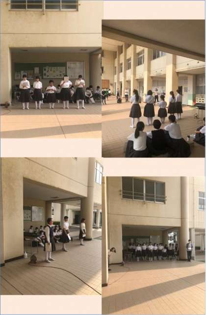 職員室前で発表会をしました。