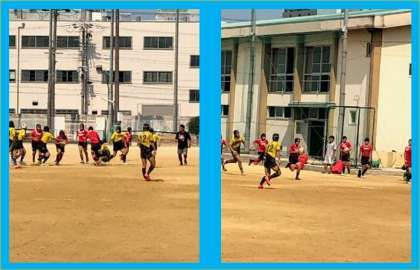 本校で、真住中学校ラグビー部(住之江区)と練習試合を行いました。