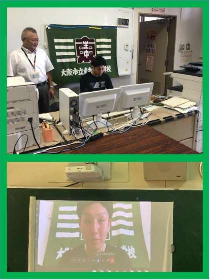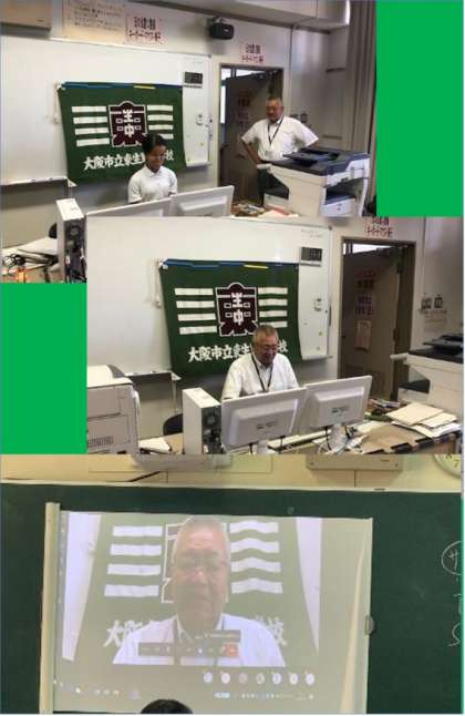 午前8時30分に開始した早々、音声・映像等アクシデントが発生、おそらく大阪市立小・中学校でリモート集会が多く行ったためか、サーバーに支障が生じたかも。急遽、時間変更し、1時間目終了後に行いました。