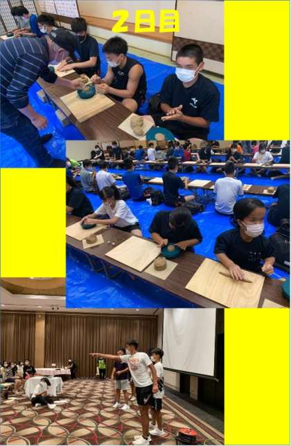 2日目のマリン体験だけは暴風警報が出ていて実施できませんでしたが、代わりの唐津焼の陶芸体験もみなさんは真剣に取り組んでいました。焼き上がりの作品が楽しみです。ホテルにいる夜の間は台風の影響で外は暴風雨でしたが、夜のレクレーションはレク係が中心になって活動を進めてくれて大いに盛り上がりました。