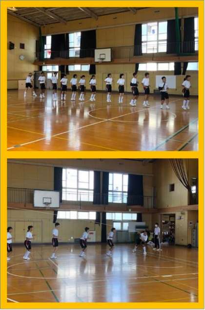 2年3組の体育授業は、体育館で「大縄跳び」の練習です。