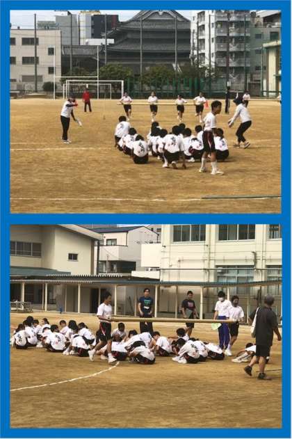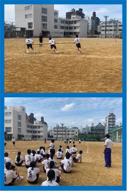 個人種目でのレース順、コースなどを確認し、学年種目である「台風の目」を実演しました。(担当:田中)