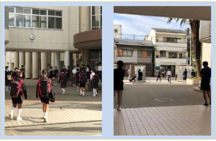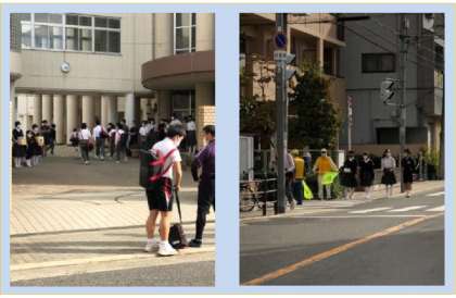 正門の横にある信号には、いつも見守り隊の方が活動されています。