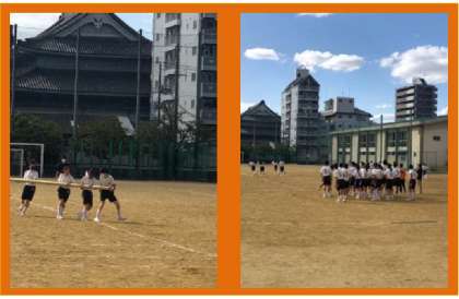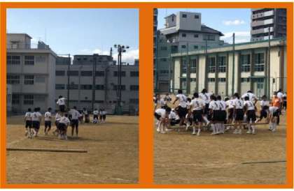 学年種目の入場は、ラグビーのワンチームを真似ての入場を意識しています。