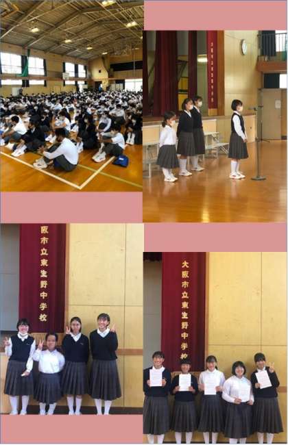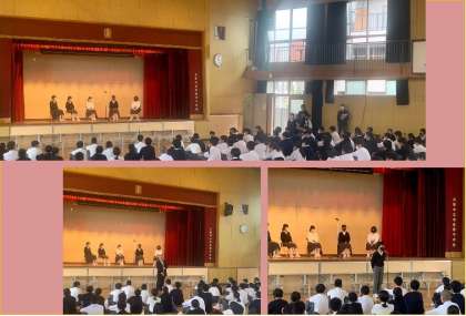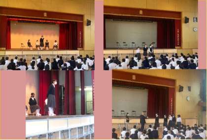 6時間目、後期生徒会役員所信表明演説会が体育館で行われました。