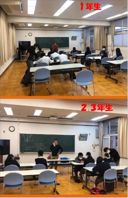 前半は1年生、後半は2,3年生、数学を学習しました。