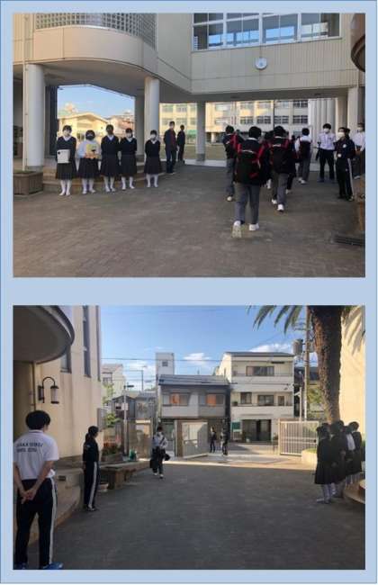正門には新生徒会の生徒5人が並び、大きな声で「おはようございます!」と呼び掛けています。