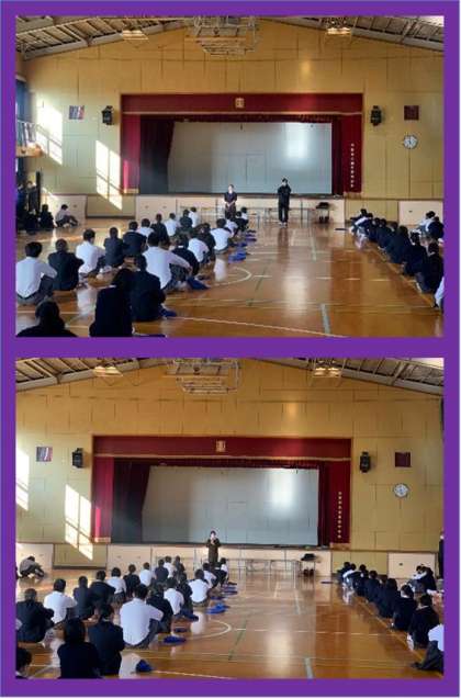 浦久保先生から「映像出演にはなりますが、みんなが頑張って取り組んできた文化祭をしっかりと見ましょう。また、平均年齢が70歳を超える夜間学級の生徒さんも映像で出演しますので、温かい目で文化祭を見て欲しい。」と話がありました。(担当:田中)