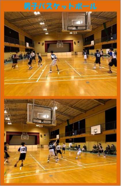 体育館で男子バスケットボール部が、下福島中学校と練習試合をしています。