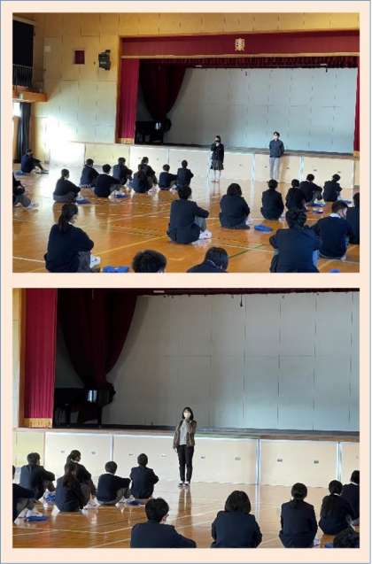 「卒業後の新しいスタートのために、しっかりとゴールしてほしい。残りの時間は少ないので毎日を大切に意識して下さい」と尾上先生からのお話でした。(担当:木藤)