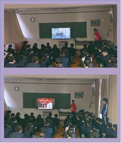 日下部先生が先日の校外学習の様子をムービー形式で作られ、それを全員で鑑賞しました。また、日下部先生ご自身に起こった当日のトラブル体験から、嫌なことがあった時も気持ちの切り替えで対応する大切さを話されていました。(担当:木村嘉)