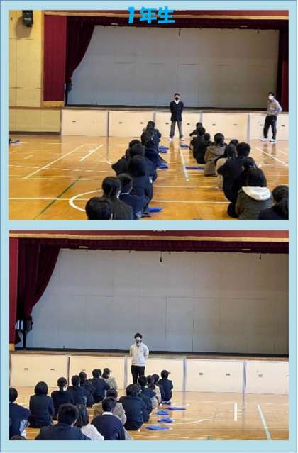 一年生の学年集会では、角石先生から「学校生活がすべてのことにつながっています。普段から自分に打ち克つことを大切にしてください。」と話がありました。(担当:田中)