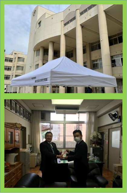 地域にある会社、日研工業所様からテント1セットと人工芝ロール2枚を寄付していただきました。