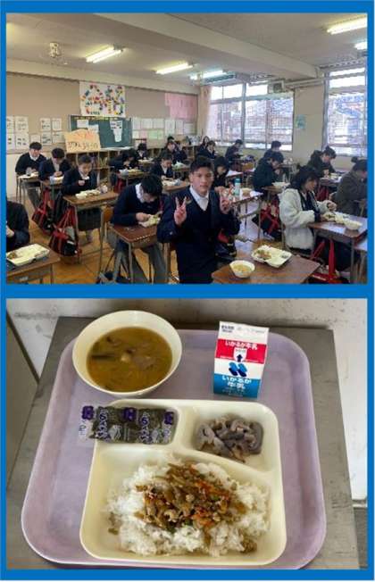 本日の給食メニューは、「鶏ごぼうご飯」・「みそ汁」・「焼きレンコン」・「牛乳」でした。